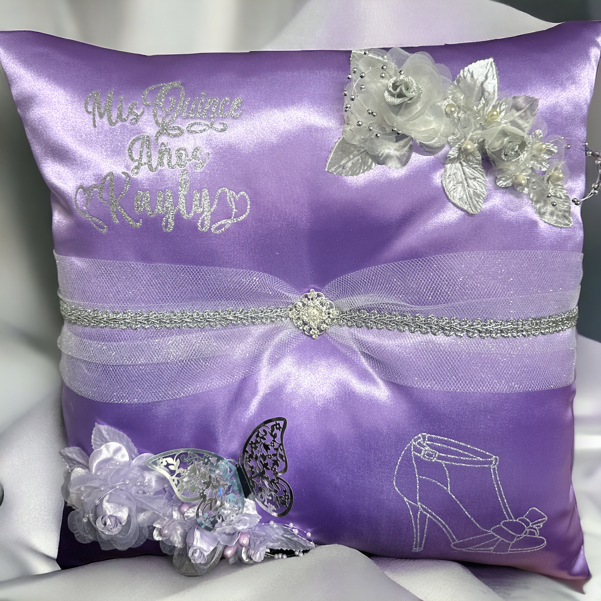 Light Purple, Lavender | Quinceañera Pillow Set | Sweet 16 Full Set, Shoe Pillow, Tiara Pillow & Corsage